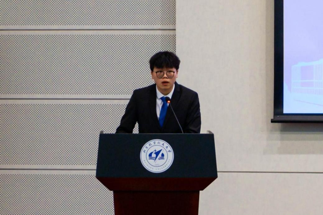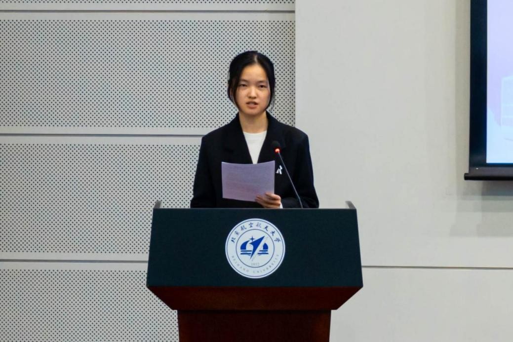 随后,北航校学生会代表王祉毓同学致辞。王祉毓同学总结陈述了过去一年威廉希尔足球官网学生会的工作,对相关工作表示认可,同时也传达了校学生会对威廉希尔足球官网新一届学生会工作的支持和期待。