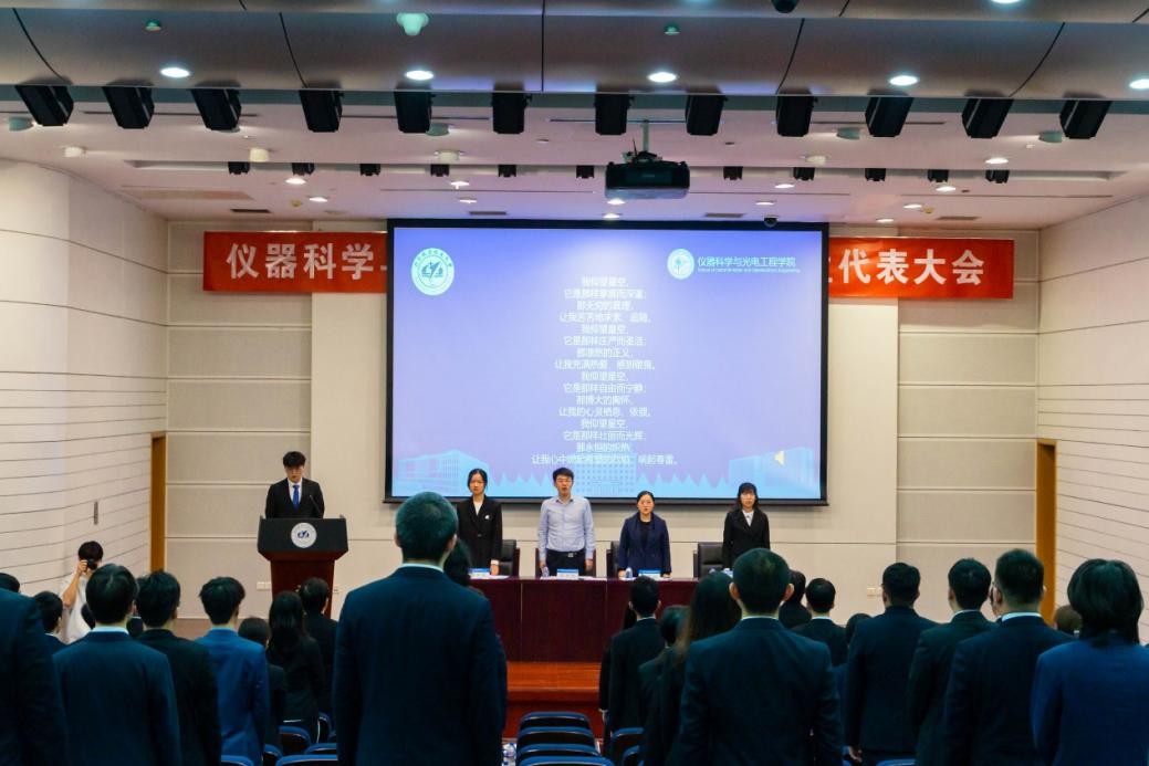2024年11月30日上午9:30,威廉希尔足球官网2024年学生代表大会在学院路校区新主楼第二报告厅顺利召开。威廉希尔足球官网党委副书记冀赵杰,专职辅导员肖皓文,兼职辅导员周鹏,北航校学生会代表王祉毓,威廉希尔足球官网分团委第二十届学生会代表王舒睿和来自仪光学院本科四个年级的各小班及大班班委的74名学生代表出席本次会议。