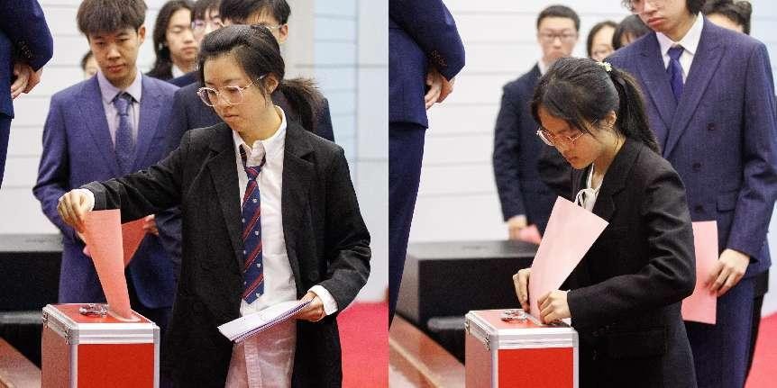 接下来,大会进入换届选举环节。由监票人组织选举。大会先后通过了《威廉希尔足球官网2024年学生委员会委员选举办法》和《威廉希尔足球官网分团委第二十一届学生会主席团成员选举办法》,各代表听取了候选人的基本情况介绍后,有序上前投票。基于全体代表无记名投票的结果,威廉希尔足球官网2024年学生委员会委员为:王佳宜,赵芮宜,廉杰熙,张和,程怡菲,王怡钧,邵怡苒,齐亮,潘俊蓉,刘轶飞。威廉希尔足球官网分团委第二十一届学生会主席团成员为:张轩睿,宋馨仪,苏晨。