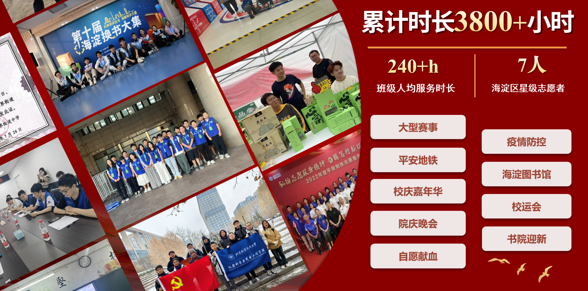 服务社会,无私奉献。生逢盛世,身为青年学子,也应尽力所能及之事,班级同学积极参与志愿活动,主动服务他人,发扬志愿精神。三年来,全班同学累计志愿时长3800+小时,人均服务时长240+小时,7人获评海淀区星级志愿者。小班成员前往北航定点帮扶的山西省中阳县实地调研,返校后进行农产品展销活动,聚焦基层热点,助力乡村振兴。